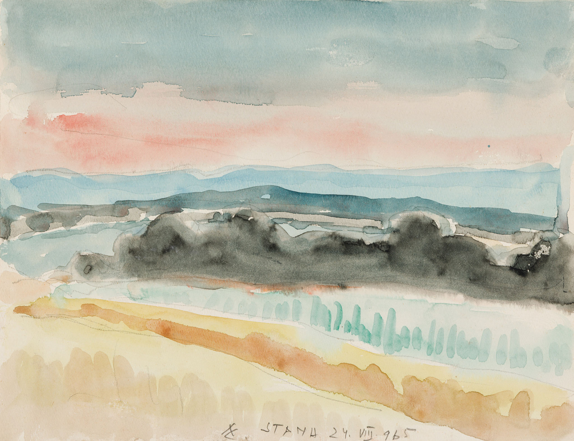 signed in monogram, located and dated lower middle in pencil: AC. STANA 24. VIII. 965