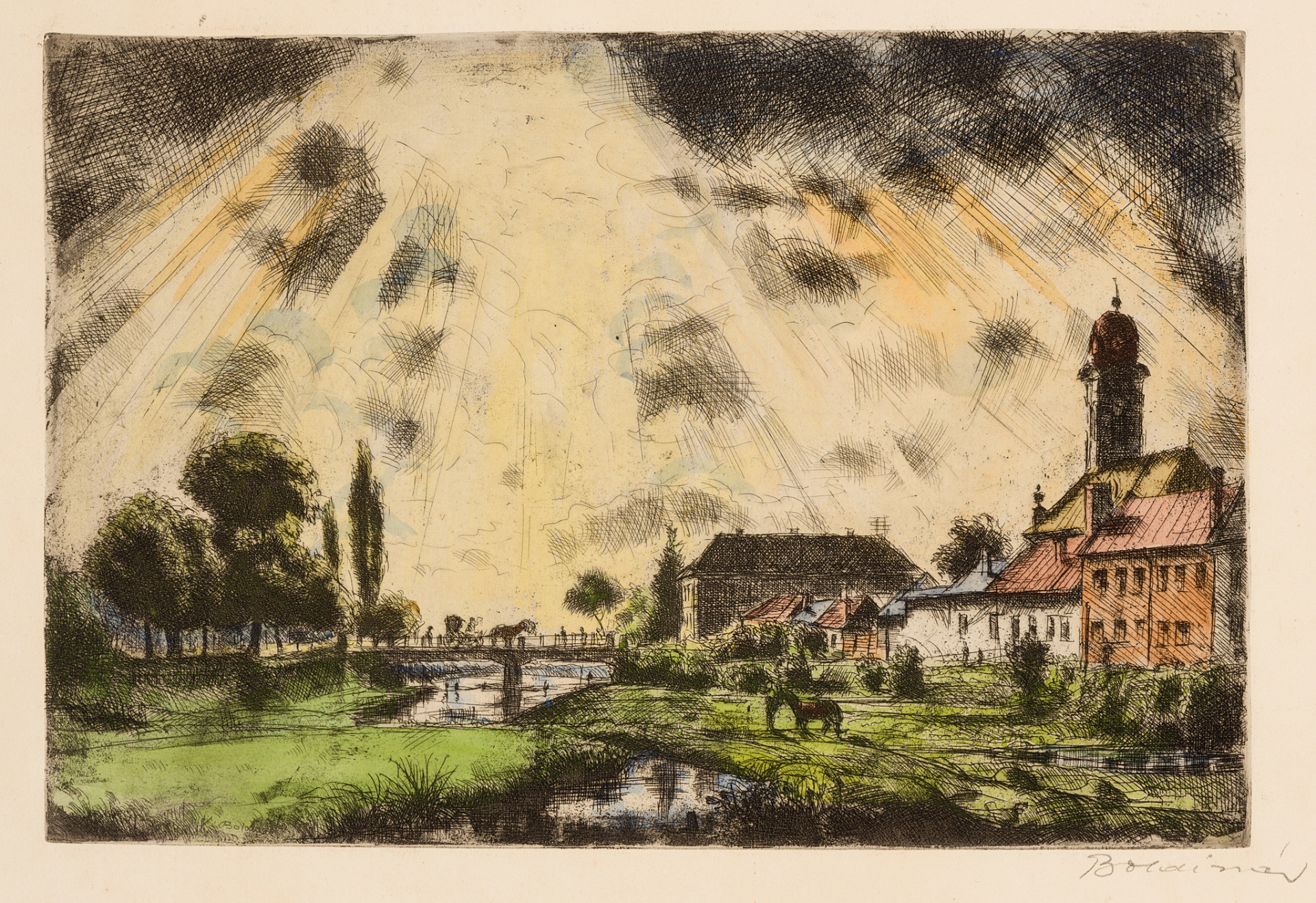 acvaforte, acuarelă, hârtie
