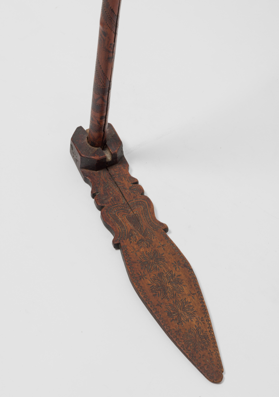 Lemn de esență tare; decorat prin incizare și crestare