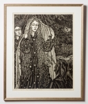 inscription on the lower left in pencil: 13. Dante: Dante: Le Purgatoire. Chant XXXI. Béatrice se dévoile. Gravure sur bois 1964, tirée à la main.