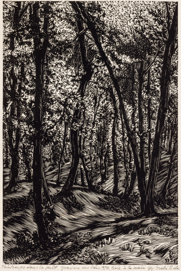captioned and dated lower left in pencil: Printemps dans la forêts. 1950
