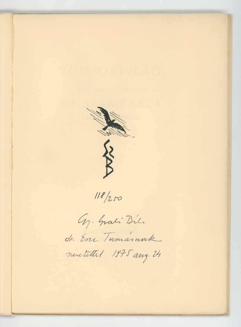 numbered, signed in monogram and dated with dedication: 118/250 / Gy. Szabó Béla / dr. Esze Tamásnak / szeretettel 1975. aug. 24
