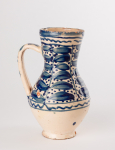 Stare de conservare relativ bună, deprinderi de smalț din fabricație și din cauza uzurii pe corp, la buză, urme de uzură la toartă, ciobit la bază.