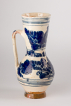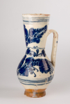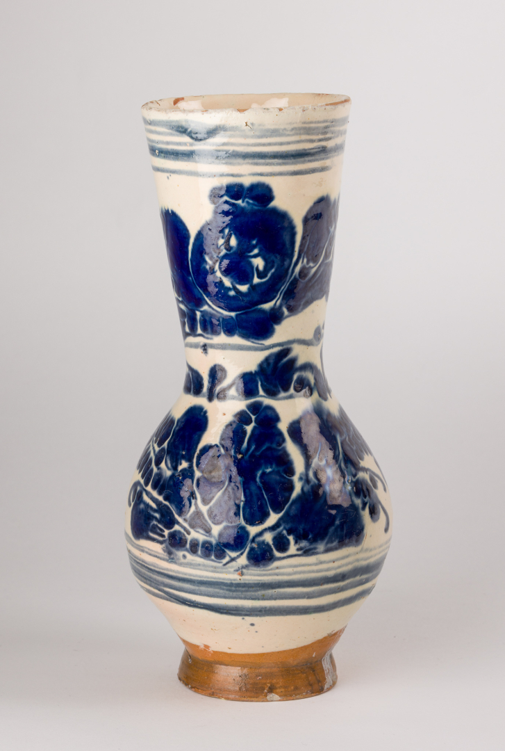 Well-preserved vessel, slightly chipped on the inner lip and base. Slight signs of wear on the handle. The decorative motifs are diffused from factory.