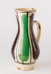 Cracked on the belly, mouth, and bottom, chipped on the mouth and base, manufacturing glaze defects on the belly.