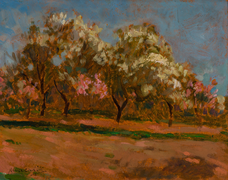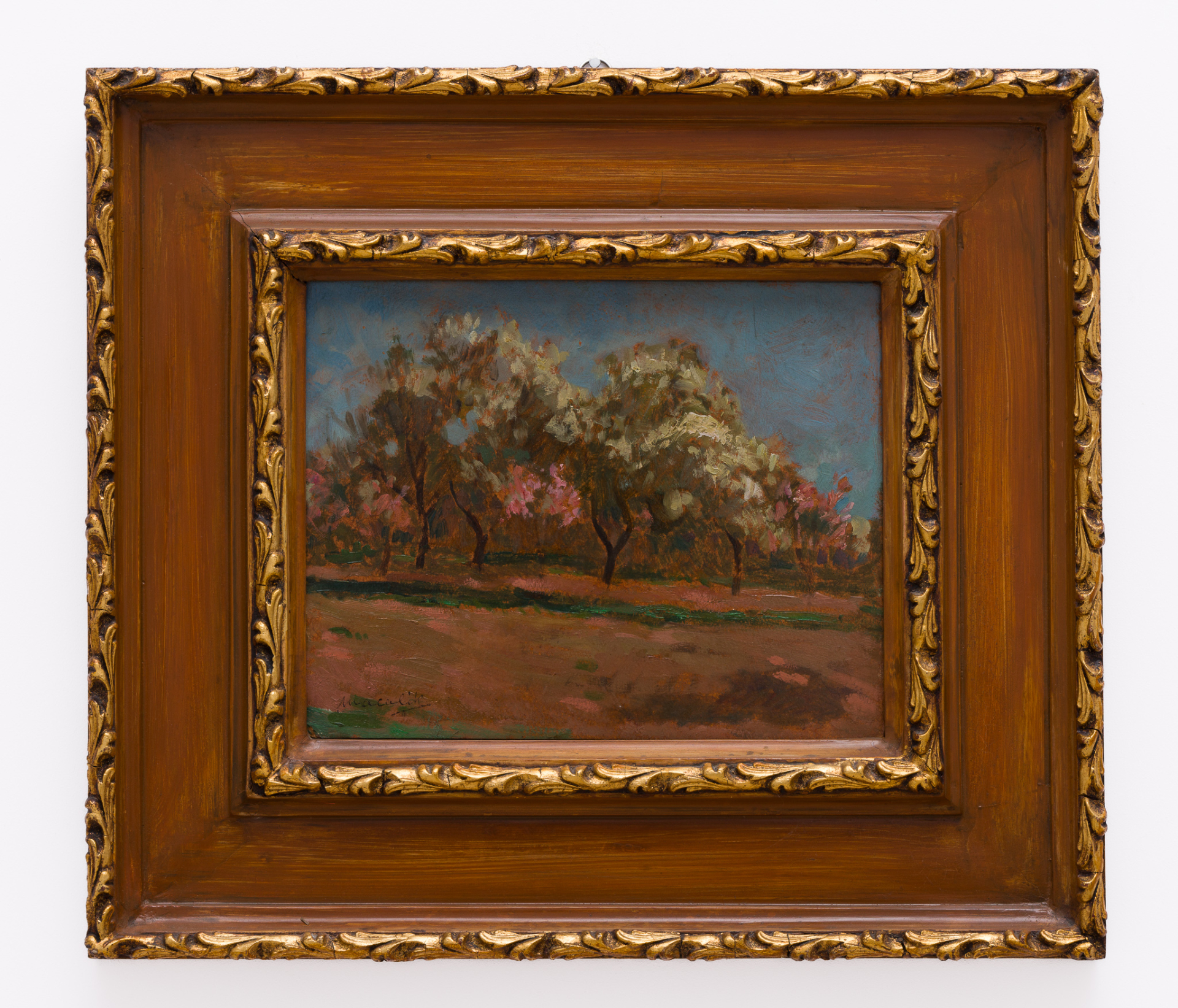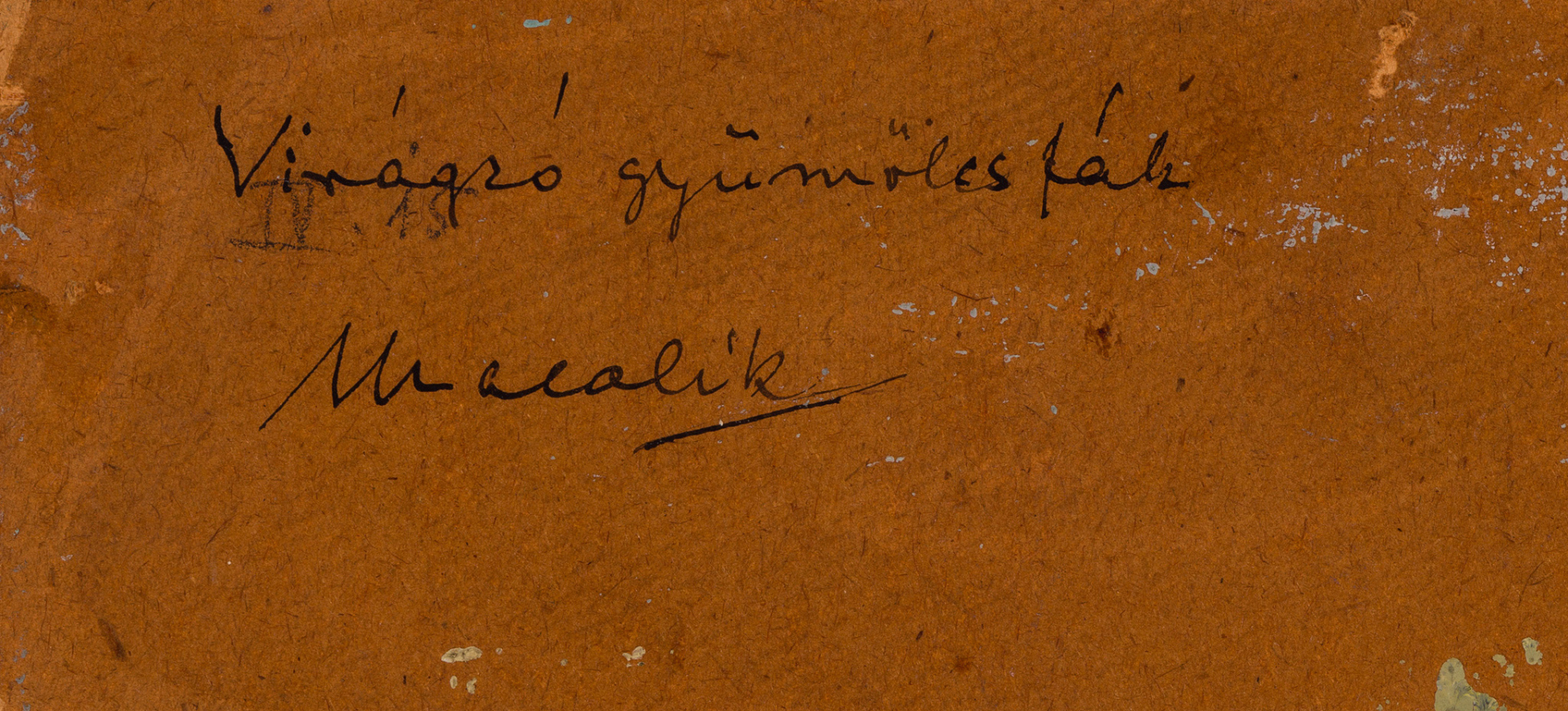 on back: captioned and signed: Virágzó gyümölcsfák / Macalik