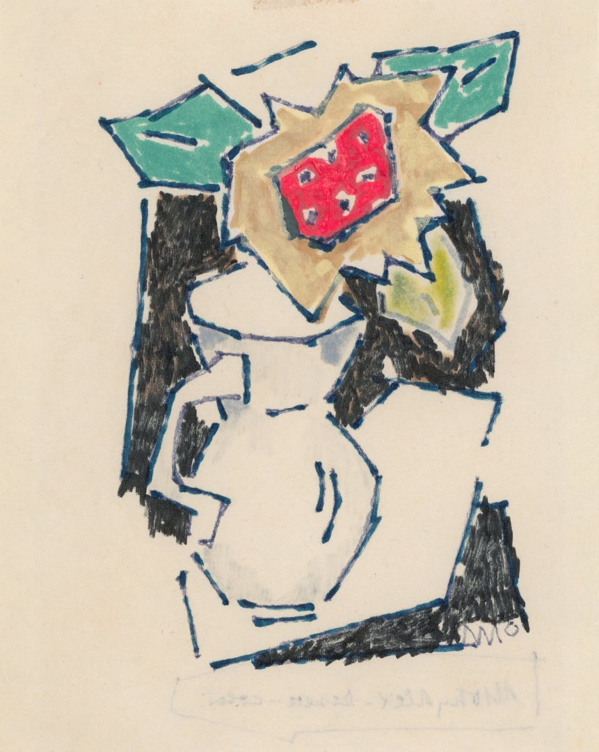 signed in monogram lower right in black: MO