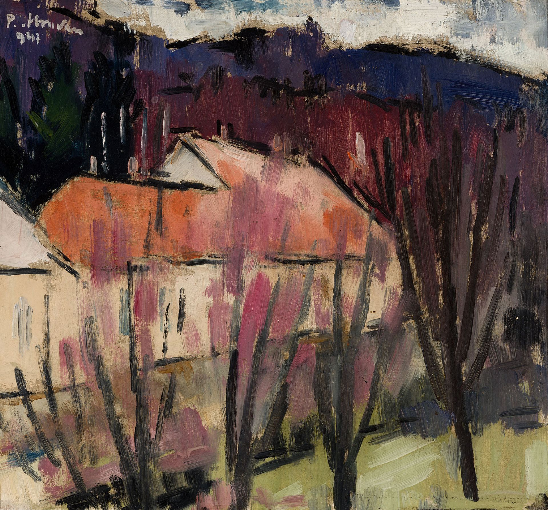 signed and dated upper left in white: P. Abrudan / 947