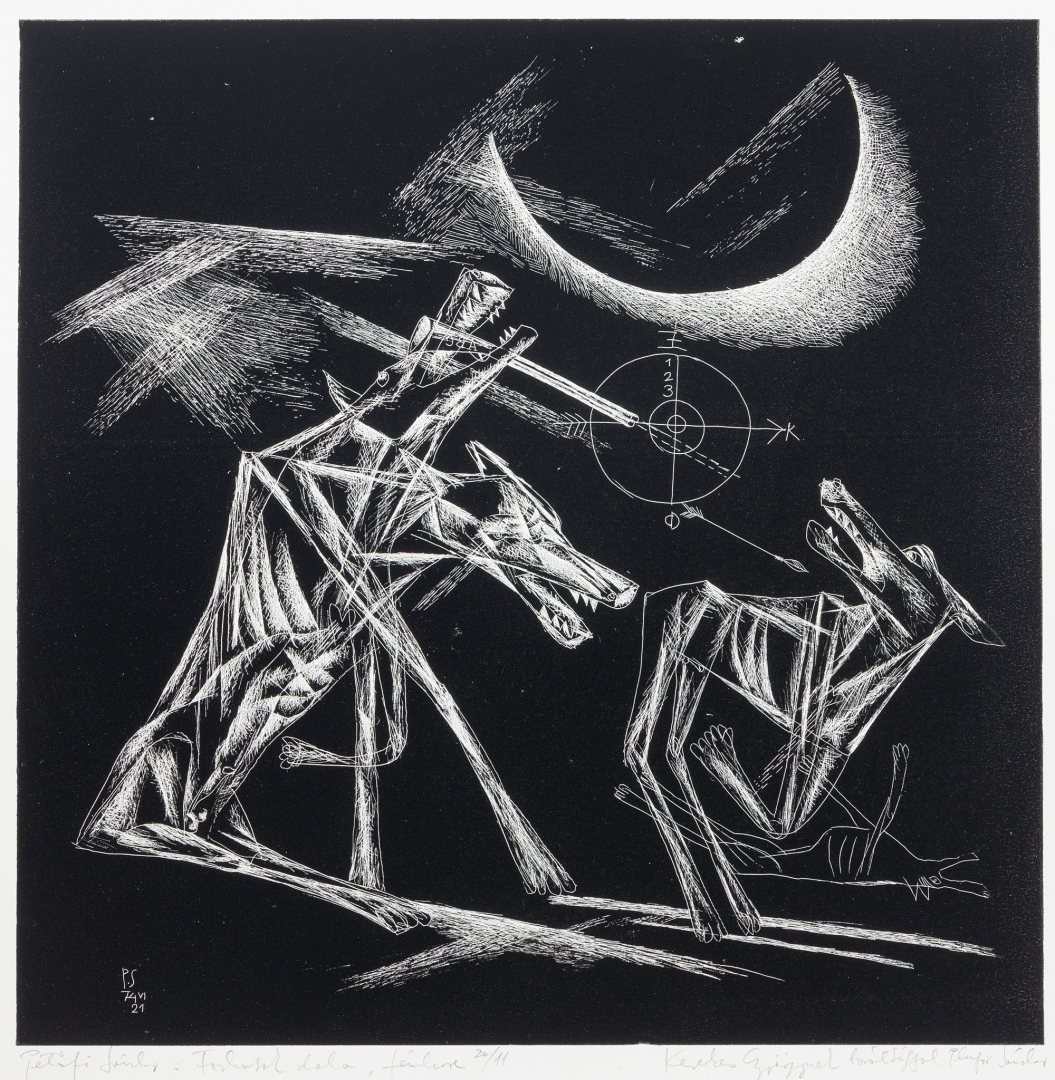 captioned lower left in pencil: Petőfi Sándor: Farkasok dala