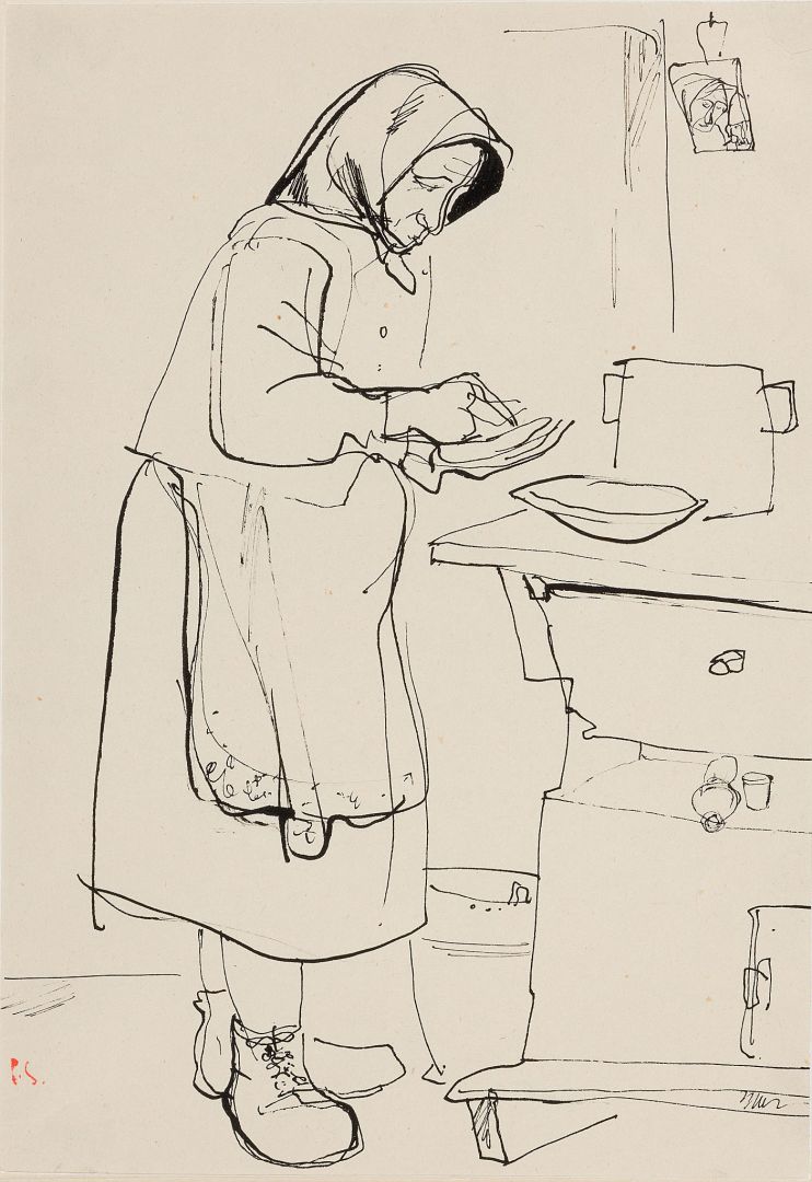 signed in monogram lower left in red: P. S.