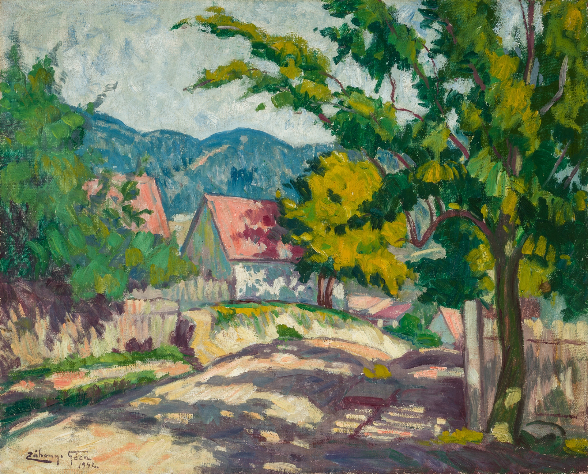 signed and dated lower left in purple: Záhonyi Géza / 1942.